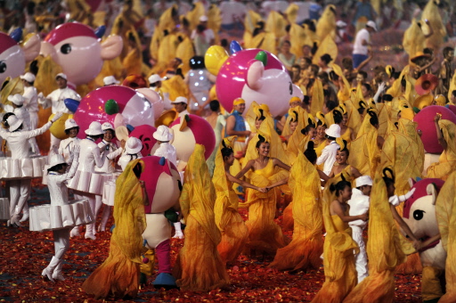 Dancers and mascots enjoy themselves during the closing ceremony for the 2008 Beijing Paralympic Games in the Chinese capital on September 17, 2008. [Agencies] |