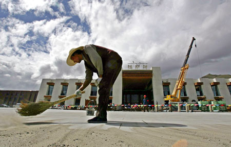 nearly finished Lhasa Railway Station in Lhasa, Tibet, June 24, 2006. The