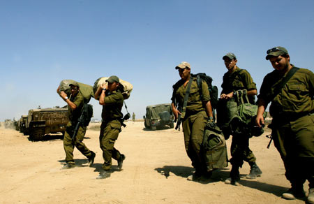 27, 2006. Israeli tanks and troops massed near Gaza for a threatened offensive