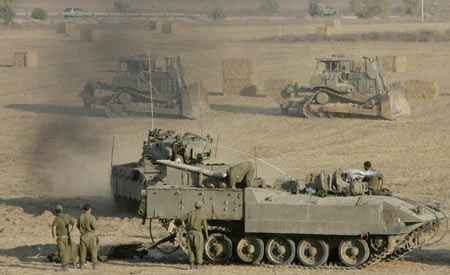 area on the Israeli-Gaza border June 27, 2006. Israel massed tanks and troops