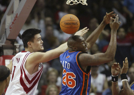 Houston Rockets center Yao Ming (L) and New York Knicks center