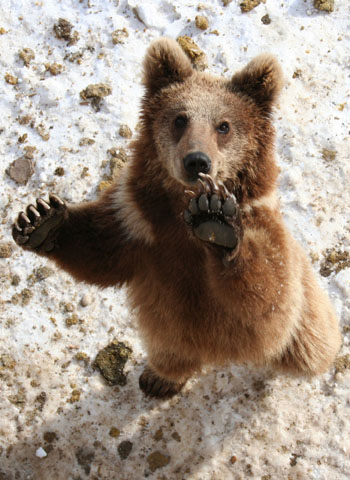 A bear is seen at the wild animal conservation in Tianshan Mountain area in Xinjiang Uygur Autonomous Region January 10, 2007. Staff members in the conservation zone were providing a safe environment as wild animals lived through severe winter. [Xinhua]