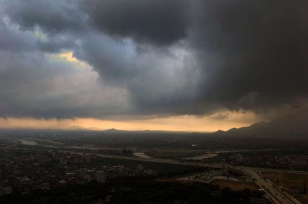 Heavy clouds gather over Putian as the tropical storm Wutip weakens to a tropical depression in East China's Fujian Province, August 9, 2007.Wutip, meaning "butterfly", is set to unleash gales and rain in Fujian and neighboring Zhejiang province from late Thursday through to Friday, Xinhua News Agency reported. [Xinhua] |