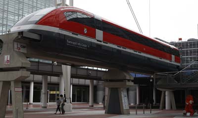 A life-size model of a Transrapid high-speed train is pictured at the international airport in Munich September 25, 2007. The German state of Bavaria said on Tuesday it had signed an agreement with rail operator Deutsche Bahn and an industrial consortium to build a Transrapid high-speed railway line from Munich city centre to its airport. [Reuters]