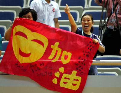 Updated: 2007-10-08 21:25 ![]() Le Le's mother gives a thump-up to his mentally retarded son during the doubles table tennis match at the Special Olympics World Summer Games in Shanghai October 8, 2007. [Xinhua]
