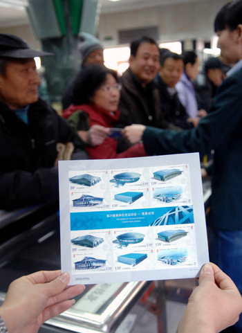 Updated: 2007-12-21 14:07 ![]() Stamp collectors are at a Beijing post office to buy the newly issued commemorative stamps featuring some of the sports venues that will host the 2008 Olympics Games, December 20, 2007. [Xinhua]