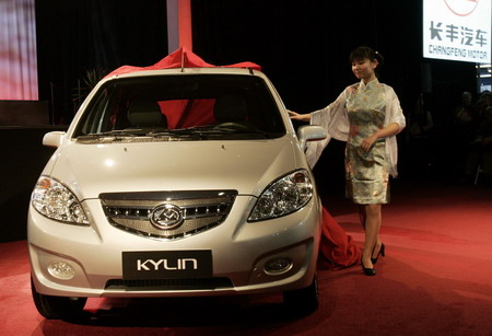 Chinese automaker Changfeng Motors unveils its new Kylin multi-purpose vehicle during press days of the 2008 North American International Auto Show in Detroit, Michigan, January 14, 2008. [Agencies]