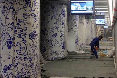 Updated: 2008-02-28 17:18 ![]() A man sweeps the floor of the platform at Beiucheng Station on the new Beijing subway Line 10, February 28, 2008. The subway line is due to open before the Olympics in August. [CFP]