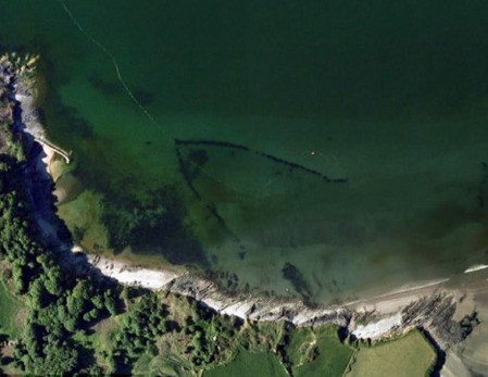 ![]() A huge ancient fish trap has been found in an estuary after it was spotted in aerial photographs on Google Earth. The V-shaped trap was first discovered from aerial photographs at Poppit, Pembrokeshire. Experts believe the 260m (853ft) man-made structure could be more than 1,000 years old. They think it was designed to catch migratory fish, such as salmon and sea trout going up the River Teifi at Poppit in Pembrokeshire. Research is being undertaken between Pembrokeshire College and the Dyfed Archaeological Trust to find out more. |