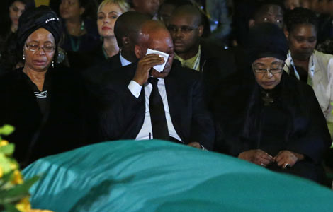 Visitors look at a big copper hot pot during a cooking skill competition in Taiyuan, the capital of North China's Shanxi province, Nov 22 2013. The eight-part hot pot, measuring 2.85 meters in diameter, was recognized as the biggest hot pot in the world. [Photo/icpress.cn] |