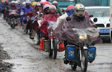 More than a dozen wild pigs jump off a 3-meter platform and swim under the instruction of a trainer at a performance in a park in Guangzhou, Guangdong province, on Saturday. It takes three months for the trainers to teach them how to dive and swim. [Photo by Gao Dianhua/Asianewsphoto]