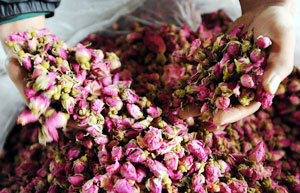A worker demonstrates traditional techniques to make herbal medicine. |