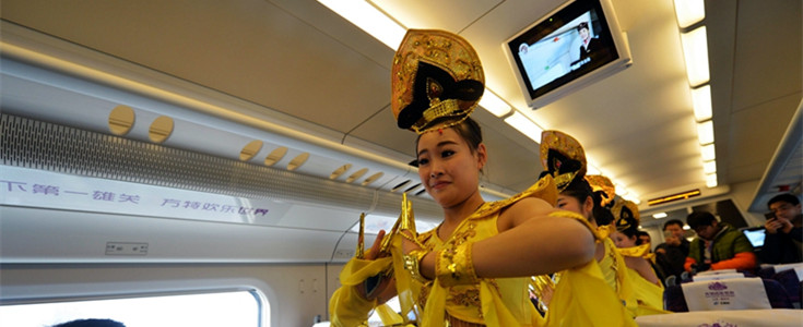Updated: 2015-01-18The bullet train D2703 Lanzhou- Urumqi made its maiden run at Lanzhou’s west station on Dec 26th.