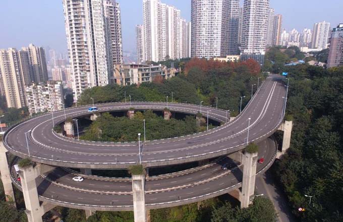 A triple-loop spiral bridge in Chongqing has left many netizens in awe, with its sharp turns. The bridge, called the Rongqiao Overpass, has become a landmark for the city, but it's also raised debate among the locals.