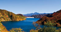 III. Red autumn leaves along the lake