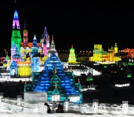 The Ice and Snow World is illuminated during the 10th Harbin International Ice and Snow Festival in Harbin, Heilongjiang province, December 23, 2008.