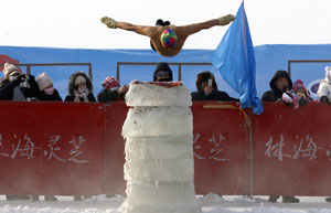 The swimming display is part of the Harbin International Ice and Snow Festival which will be officially launched on Jan 5.