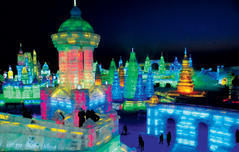 Tourists enjoy themselves during Harbin International Ice and Snow Festival.