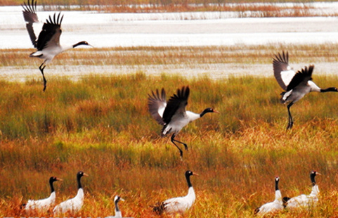 Black-necked Cranes spending winter in Caohai Lake