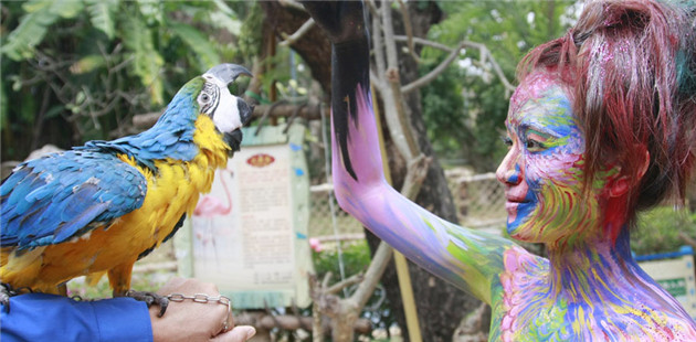 Females highlight animal rights by bodypainting