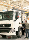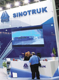 Tan Xuguang, chairman of China National Heavy Duty Truck Group, also known as Sinotruk, delivers a speech at its business conference held on Tuesday.