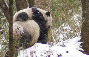 A panda cub is seen being carried by its mother in the snow in Foping national nature reserve, Northwest China’s Shaanxi province, Feb 14, 2011. About 100 wild pandas live in this reservation area.