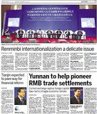 Regional cooperation between southwest China's Yunnan province and neighboring South Asian and Southeast Asian nations will advance China's effort to promote cross-border trade payments in its own currency.