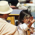 U.S. actor Brad Pitt guides his son Maddox to board a water taxi in Venice Aug. 28, 2008. Pitt and George Clooney star in Ethan and Joel Coen's movie "Burn After Reading" which is shown out of the competition at the Venice Film Festival. |