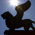 The golden lion, symbol of the Venice Film Festival, is silhouetted against the sun in Venice August 26, 2008. |