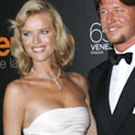 Czech model Eva Herzigova and her partner Gregorio Marsiaj attend the premiere of the movie "Valentino: The Last Emperor" directed by Matt Tyrnauer of the U.S at La Fenice Theatre in Venice August 28, 2008. |