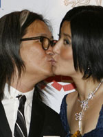 Director Peter Chan Ho-sun (L) kisses his wife, actress Sandra Ng, after winning the best director and best feature film awards at the 45th Golden Horse Awards in Taichung December 6, 2008. |