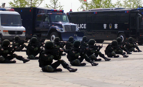 Masked members of a Chinese police SWAT