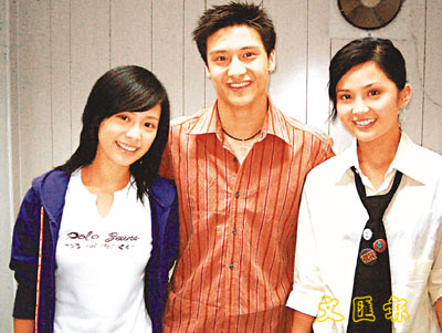 Diving world champion of China Tian Liang poses with Hong Kong pop group "Twins"[qianlong.com]