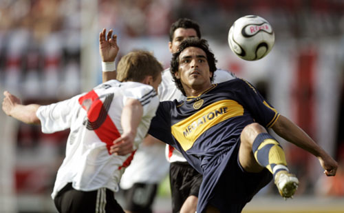 Boca Juniors VS.River Plate (Reuters) Updated: 2006-10-09 08:59  Boca Juniors' Claudio Morel Rodriguez (R) is challenged by