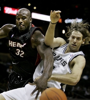 (32) and San Antonio Spurs forward Fabricio Oberto, of Argentina, (7)