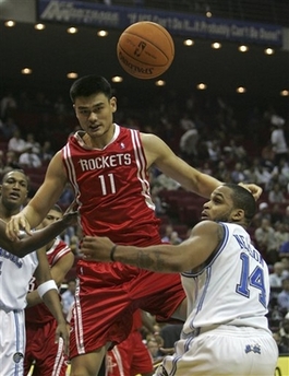 China, has the ball knocked out of his hands by Orlando Magic's Jameer