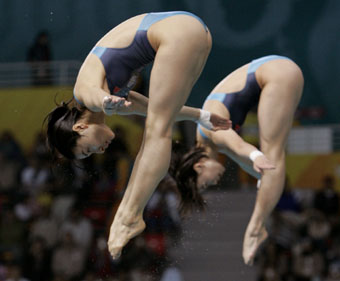 Guo rules women's 3m synchro diving(Xinhua)Updated: 2006-12-12 08:21 Chinese Olympic champion Guo Jingjing took the limelight of the Hamad Aquatic Center together with her partner Li Ting as they cruised to the women's 3m synchronized springboard crown at the 15th Asian Games here on Monday.