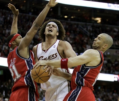 The Nets missed their first 10 shots of the quarter before Carter finally dropped a 12-foot jumper to make it 81-70 with 4:07 left. James scored on a layup to get Cleveland within nine again, but after Kidd missed a 3-pointer, Cavs rookie Daniel Gibson was called for a charge with 1:39 left. Carter split a pair of free throws with 1:04 left, and a few seconds later James appeared to cut his right knee on a chair while diving into Cleveland's bench. Kidd had a chance to extend new Jersey's lead but couldn't, missing four consecutive free throws to keep the Cavs within 10. But with James watching from the sideline, no one stepped up and Cleveland will now have to figure out a way to win again on the road or face a Game 7 on Sunday. Late in the fourth quarter, Nets coach Lawrence Frank walked over to the scorer's table and asked, "What are we shooting in the fourth?" Told the numbers, he shook his head and chuckled slightly. The Nets were already up by 10 when tempers flared in the third quarter following another run-in between Cleveland's Sasha Pavlovic and Moore. On a drive to the hoop, Moore was hammered across the arms and sent sprawling by a trailing Pavlovic, who was whistled for a flagrant foul. New Jersey's bench erupted at seeing Moore tumble into photographers on the baseline. He got up and hit both free throws before Kidd followed with a 3-pointer, giving the Nets a 56-41 lead. Moore's jumper with 57 seconds built New Jersey's lead to 22. Along with Carter's costly turnover on the Nets' final possession, Game 4 featured the rough foul by Moore, who flattened Pavlovic with a two-handed shove on a drive by the Cavs forward in the third quarter. James didn't appreciate the hard foul and confronted Moore, who before Game 5 said the Cavaliers were overreacting. "If they want to take offense to a little love tap, that's their problem," he said. "It's a man's sport. I didn't try to hurt the boy. The boy went to the basket and I gave him a playoff foul." |