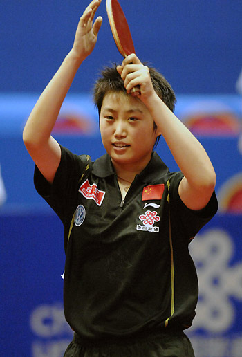 Guo Yue crowned world champ in women's singles(Xinhua)Updated: 2007-05-27 19:53 Chinese teenage sensation Guo Yue pulled herself together at 1-3 down, beating compatriot Li Xiaoxia4-3 in the women's singles final of the world table tennis championships on Saturday.