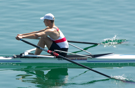 Updated: 2007-08-09 14:52 A Germany rower competes at World Rowing Junior Championships, one of the "Good Luck Beijing" tests , which was held in the newly-built Shunyi Olympic Rowing-Canoeing Park in northeastern outskirt of Beijing.[Xinhua] |