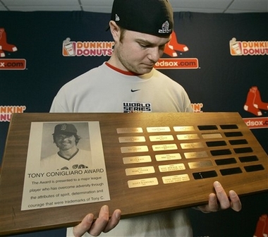 The 23-year-old is the 20th person to earn the award, which honors former Red Sox player Tony Conigliaro, whose career was cut short when he was hit in the face by a pitch at Fenway Park in 1967.