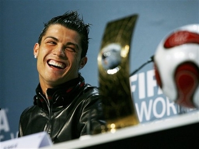 Portuguese soccer player Cristiano Ronaldo listens to questions during a press conference prior to the the 17th FIFA World Player Gala in Zurich Switzerland, Monday, Dec. 17, 2007. Apart from Ronaldo the nominees to win the FIFA World Player award are Lionel Messi from Argentina and Kaka from Brazil. [Agencies]