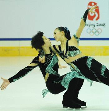 Zhang Yiyi (R) and Wu Nan perform their ice-dancing routines at the 2007-2008 National Figure Skating Grand Prix, Changchun December 24, 2007. The pair won the third place with 121.53 points. [Xinhua]