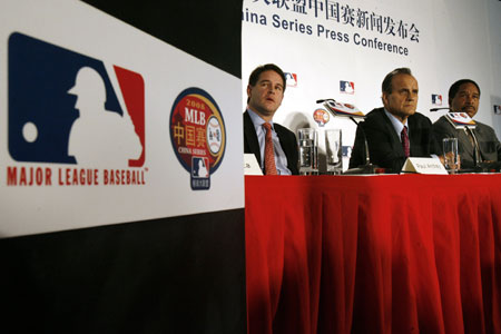 Unlike soccer and basketball, baseball and American football are invisible on playgrounds in China and absent from TV coverage. "Hopefully we can help you develop a love for the game as we love it in the United States," San Diego Padres vice president Dave Winfield said at Thursday's announcement in central Beijing which was also attended by new Dodgers manager Joe Torre. The two exhibitions and August's Olympics in Beijing give baseball a chance to show its appeal, with the sport dropped from the 2012 London Olympics but looking to return in 2016. "There is personal disappointment that baseball won't be part of the Olympics in 2012," Winfield added. "We'll do everything we can to keep baseball on the agenda and on your minds and keep making it part of the world, our gift to the rest of the world." Torre and Winfield promised that many of their top players would make the trip to Beijing. Both teams have concurrent spring training games in the U.S. "We're making an effort to make it pretty equal - leaving back and bringing here," Torre said. "Pitching is going to be the toughest consideration. You're going to be playing two games here and your are going to be playing six or seven games in Florida. But you are going to see front-line players." Added Winfield: "We're not going to give you a bum roster." Torre and Winfield acknowledged that baseball needs to repair its image, sullied by allegations of widespread drug use in the game. "Our success in Major League Baseball is based on the trust of the people," Torre said. "And it is our job to regain that trust. And whatever it takes for us to do that, we have to be willing to do it." Added Winfield: "It would be in the players' best interest not to be involved in them (drugs) any more." He said baseball was "on the right track now. You will see that. Guaranteed." Gene Orza, chief operating officer of the MLB Players Association, said his members seemed enthusiastic about making the long trip to China. "I haven't heard any players on the Dodgers or Padres - unlike any other international event I've been involved in - say they didn't want to come and play in China," Orza said. "The players back in the States realize this is truly a start - a first step - in globalizing the sport." "It's only obviously a first step. It's a long way to go. But every long journey requires a first step."