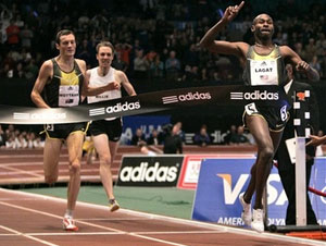 Updated: 2008-02-02 14:32 NEW YORK - Kenyan-born American Bernard Lagat out-kicked Australia's Craig Mottram in the year's fastest mile and Adam Nelson dominated the shot put with the season's top performance at the Millrose Games on Friday.