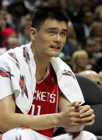 Houston Rockets center Yao Ming (11) from China watches from the bench during a rest, as the Rockets face the Milwaukee Bucks and forward Yi Jianlian from China in the first quarter during NBA action in Milwaukee, Wisconsin February 2, 2008. [Agencies]