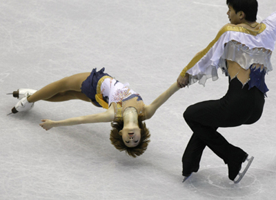 Zhang Dan and Zhang Hao, the 2005 Four Continent winners, danced to Piano Fantasy for a score of 70.45 points, while Pang and Tong recorded their season best of 67.70.