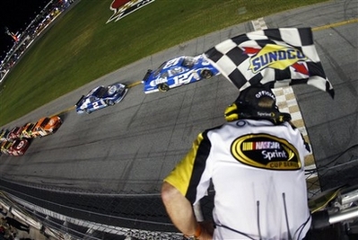 Updated: 2008-02-18 11:21 DAYTONA - Ryan Newman won the 50th edition of the Daytona 500 race in a dramatic finale on Sunday to give his Penske Racing team their first win in NASCAR's premier race. On a day when NASCAR looked back on the history of "The Great American Race" with many former champions among the sell-out crowd of 190,000, Penske's win was not the only new element.