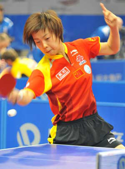 China's Zhang Yining returns the ball to a Russian player during a first round match of the women's team event between China and Russia at the 49th World Table Tennis Championship in Guangzhou, capital of south China's Guangdong Province, Feb. 24, 2008. China won 3-0. [Xinhua]