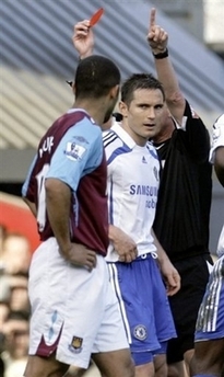 Lampard, who'd opened the scoring against his old club at Upton Park, was sent-off following a clash with Luis Boa Morte.